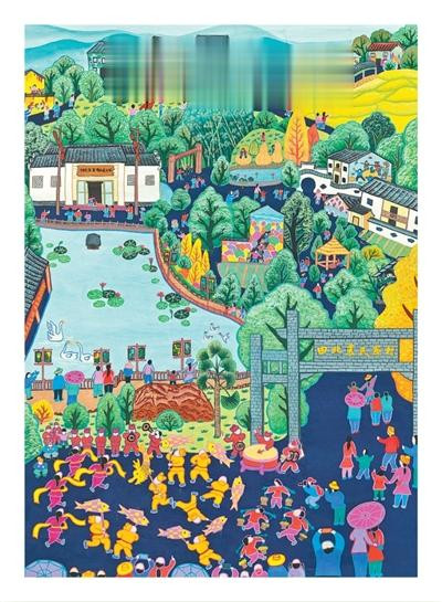 2025年,村里接待研学团队超2万人次。寻画而来的除了学生,还有不少游客。农民画的生活气息,让许多游客倍感亲切。农民画带火了文创产品、民宿和农家乐,让村民在家门口实现增收。村民郭红梅开起农家乐、承接研学接待,日子像画一样红火,“农民画把日子也照亮了。”
